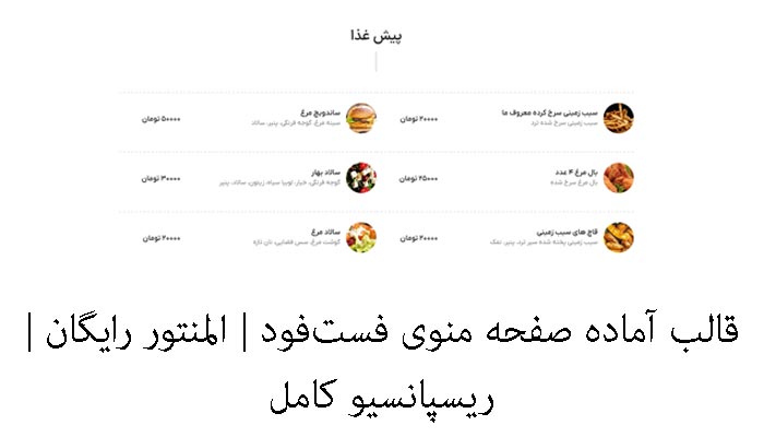 طراحی ویژه برای نمایش منوی غذا، قیمت و توضیحات